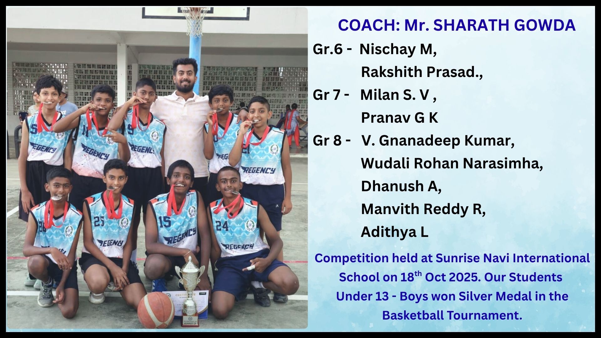 Our Students Under 13 - Boys won Silver Medal in the Basketball Tournament Competition held at Sunrise Navi International School on 18th Oct 2025.