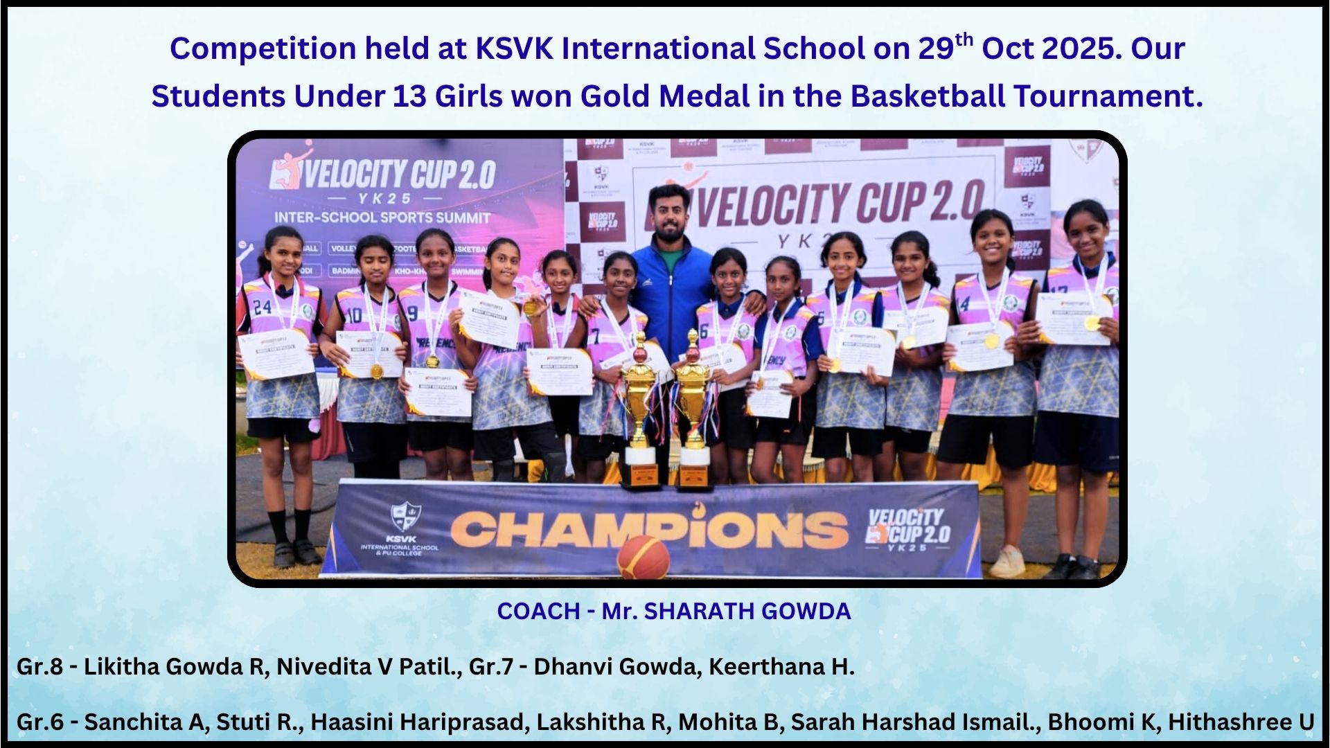 Our Students Under 13 Girls won Gold Medal in the Basketball Tournament held at KSVK International School on 29th Oct 2025